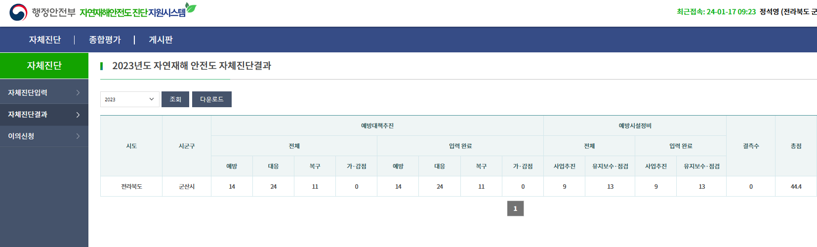 | 5943 | 2023년 자연재해 안전도 진단결과 알림 |