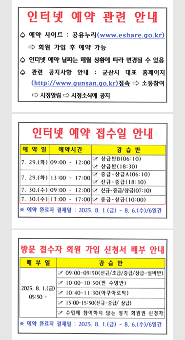 2. 인터넷 예약 접수일 : (성인반) - 2025. 7. 29.(화) ~ 7. 30.(수) / (어린이반 추가 모집 없음)*첨부 파일 참조