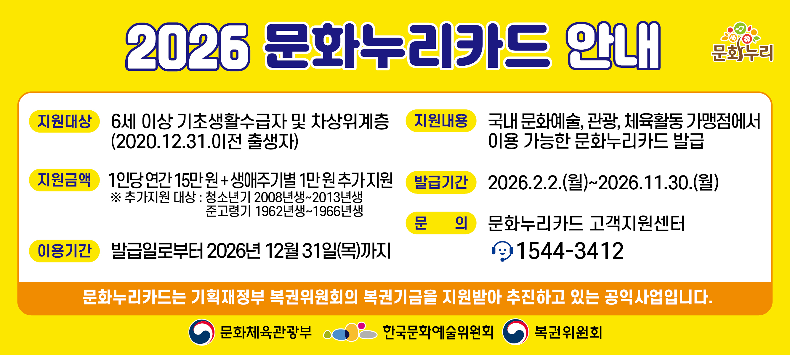 ※문화누리카드 고객지원센터(☎ 1544-3412)