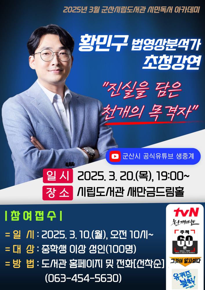 | 389 | 2025 시립도서관 [황민구 법영상분석가 초청 강연] 안내 |