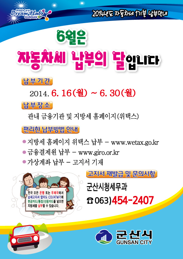 매년 6월은 1기분 자동차세 납부의 날입니다..
