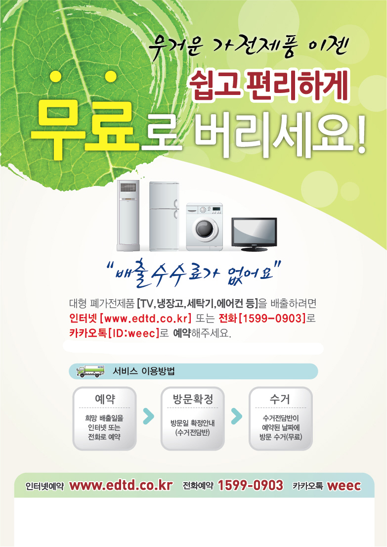 대형폐가전제품 무상방문수거 시행 안내