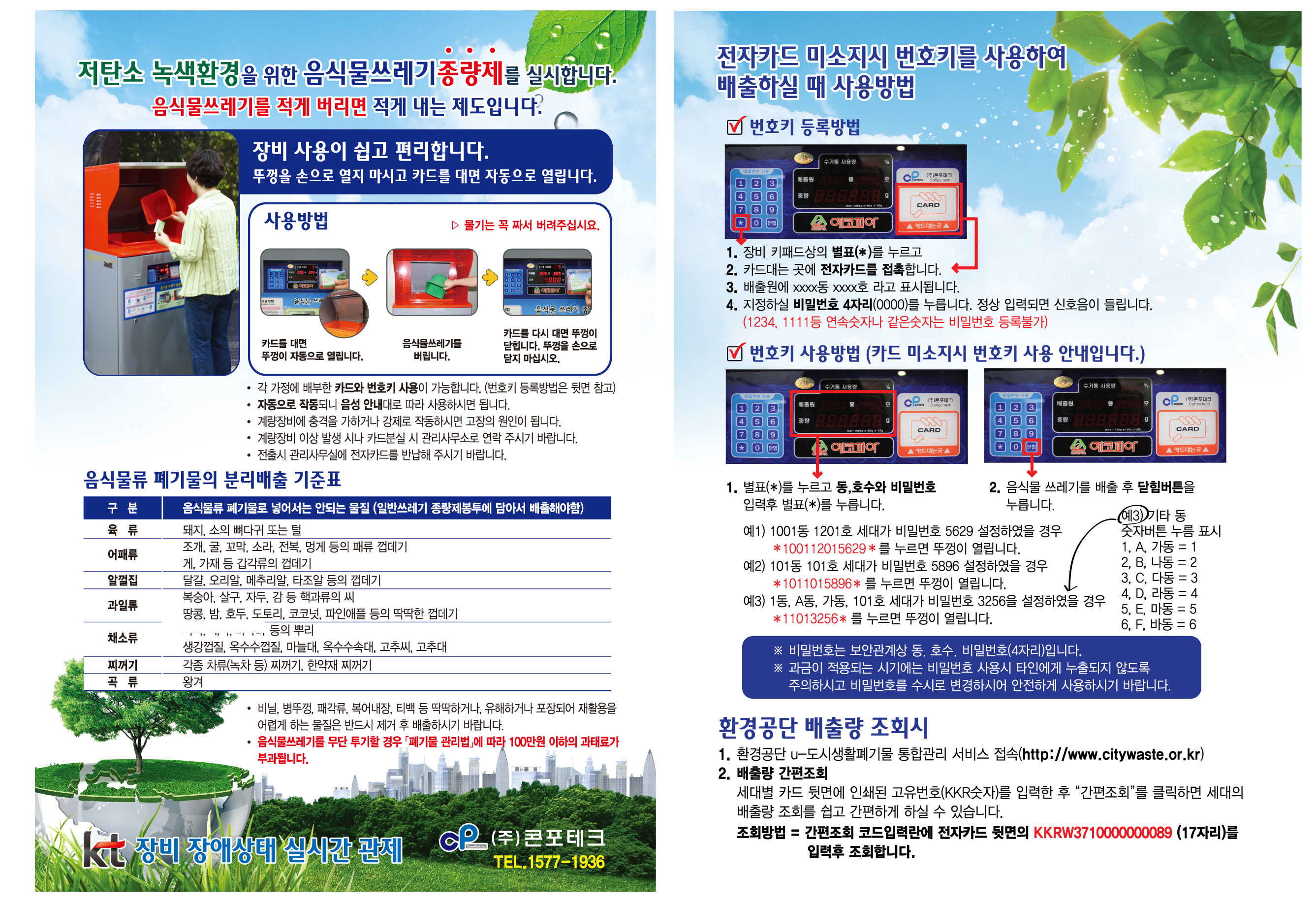 - 세대별로 배부된 카드를 이용하여 장비인식 후 음식물쓰레기 배출