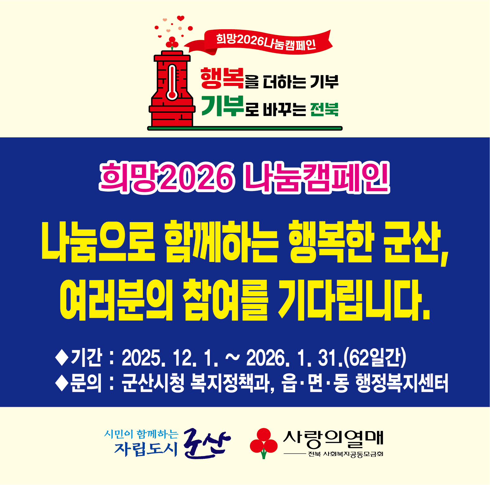 ❏ 모금 기간 : 2025. 12. 1.(월) ~ 2026. 1. 31.(토) / 62일간