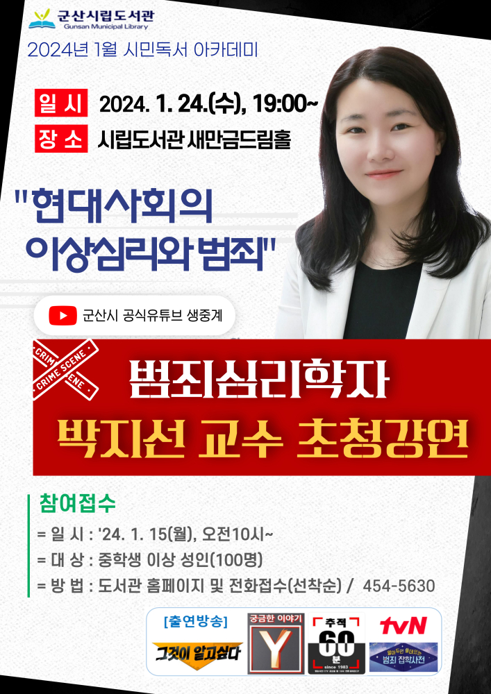 | 295 | 2024년 1월 시립도서관 <박지선 범죄심리학자 초청강연> 안내 |
