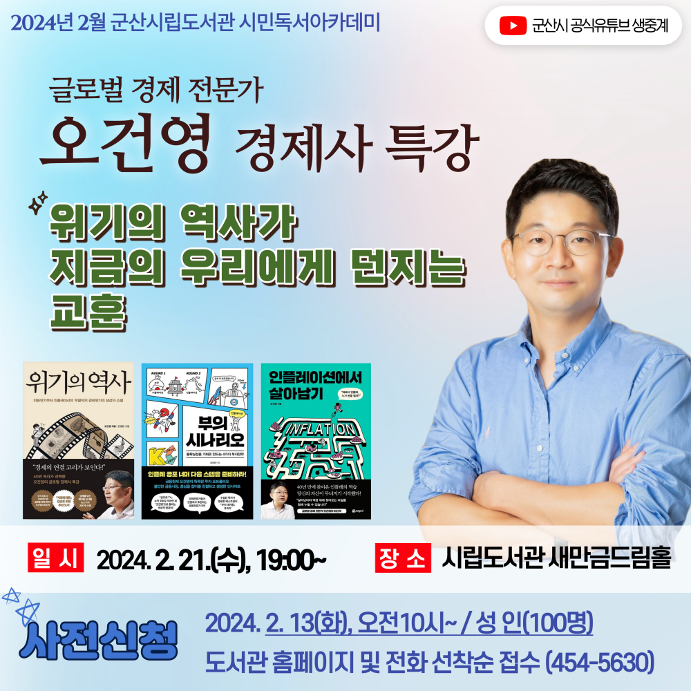 | 298 | 2024년 2월 시립도서관 <글로벌경제전문가 오건영 경제사 특강> 안내 |