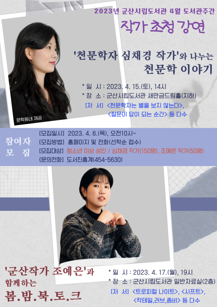 | 238 | 2023년 시립도서관 도서관주간행사 <작가초청강연> |
