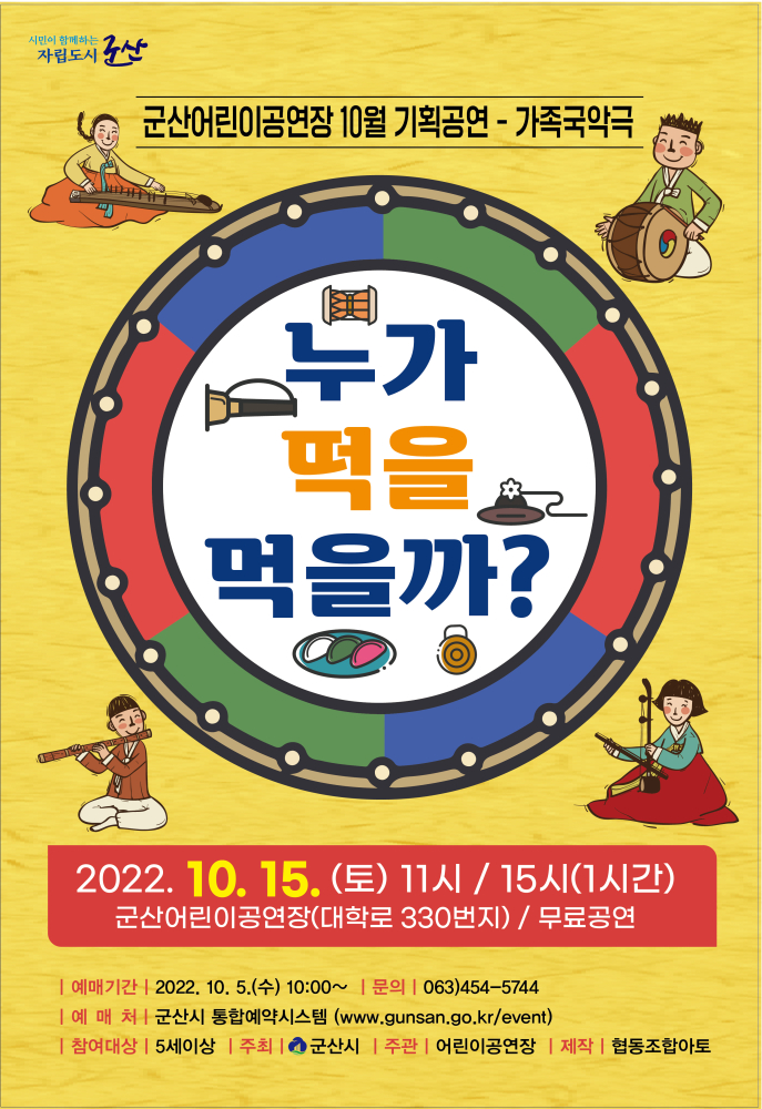 | 228 | 군산어린이공연장 10월 기획공연 '누가 떡을 먹을까?' 안내 |