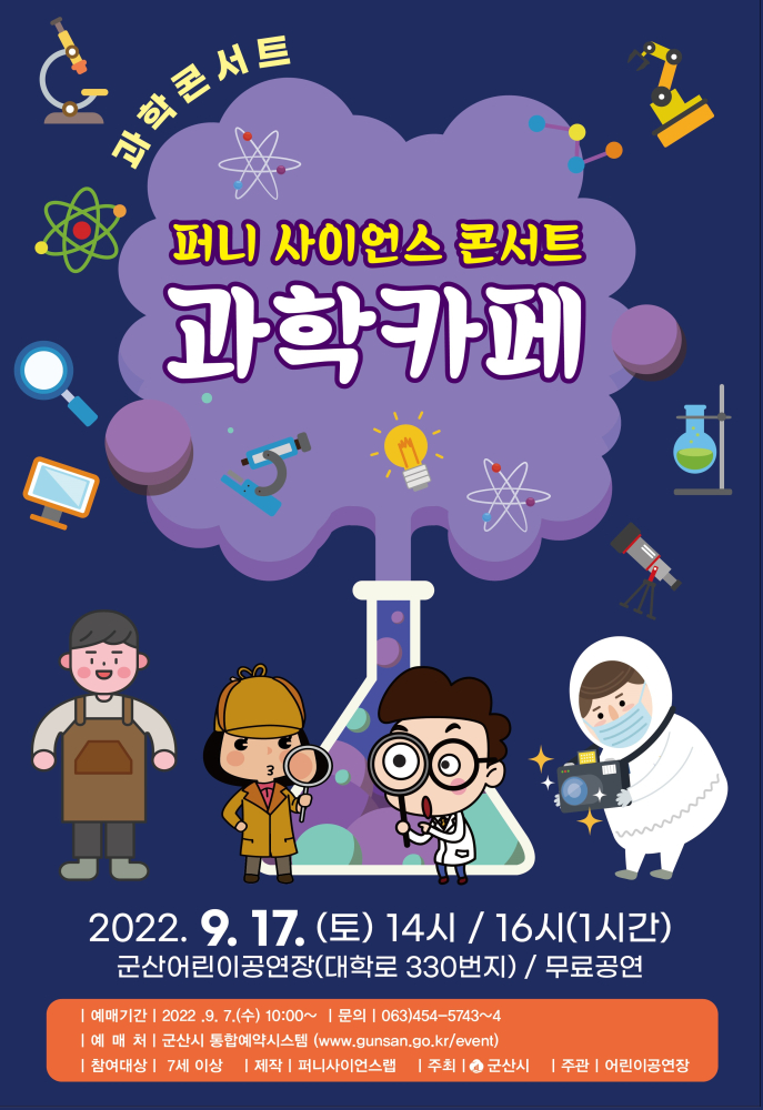 | 219 | 군산어린이공연장 9월 기획공연 '과학카페' 안내(무료공연) |
