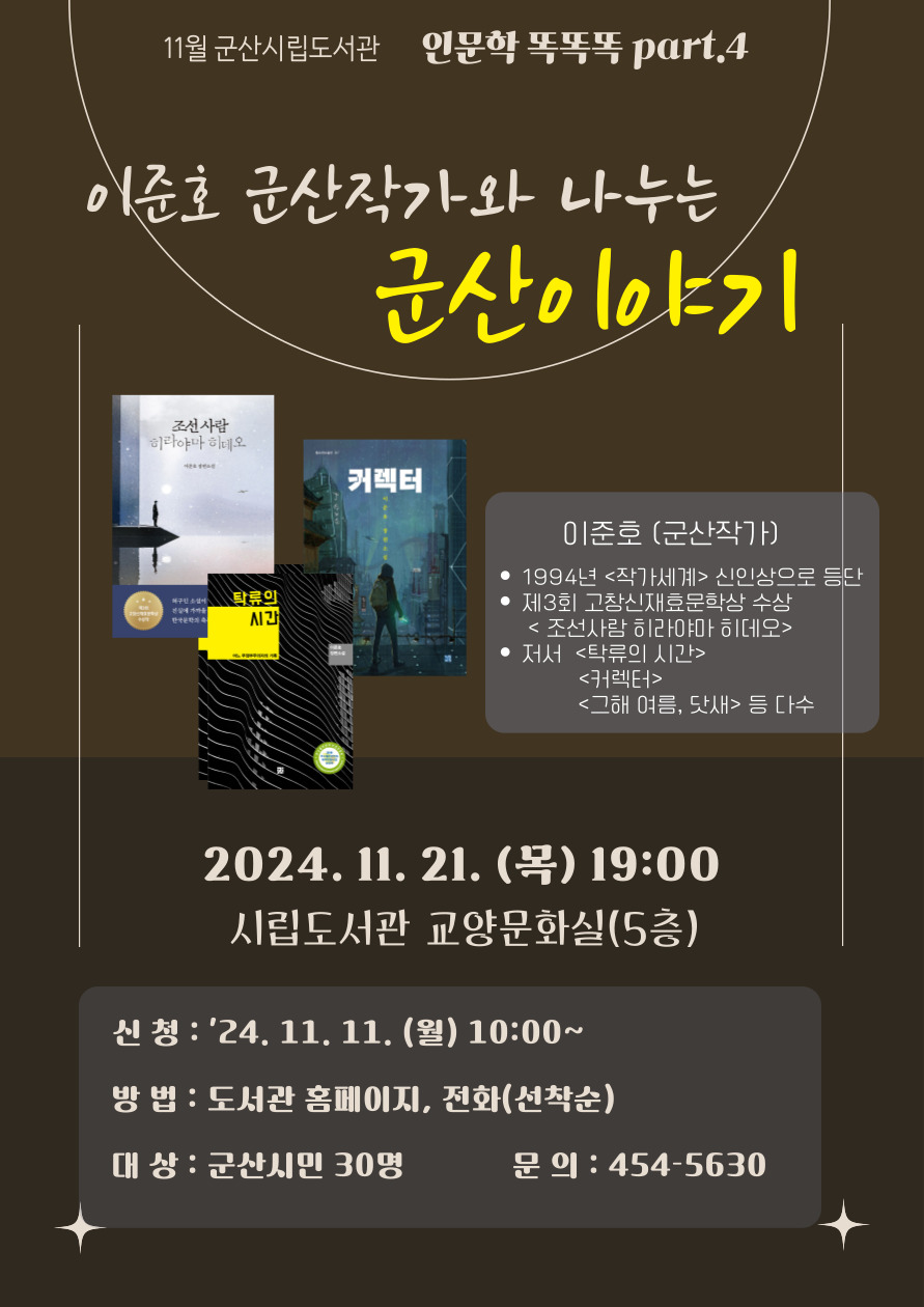 군산시립도서관 인문학 특강 '이준호 군산작가와 나누는 군산이야기'