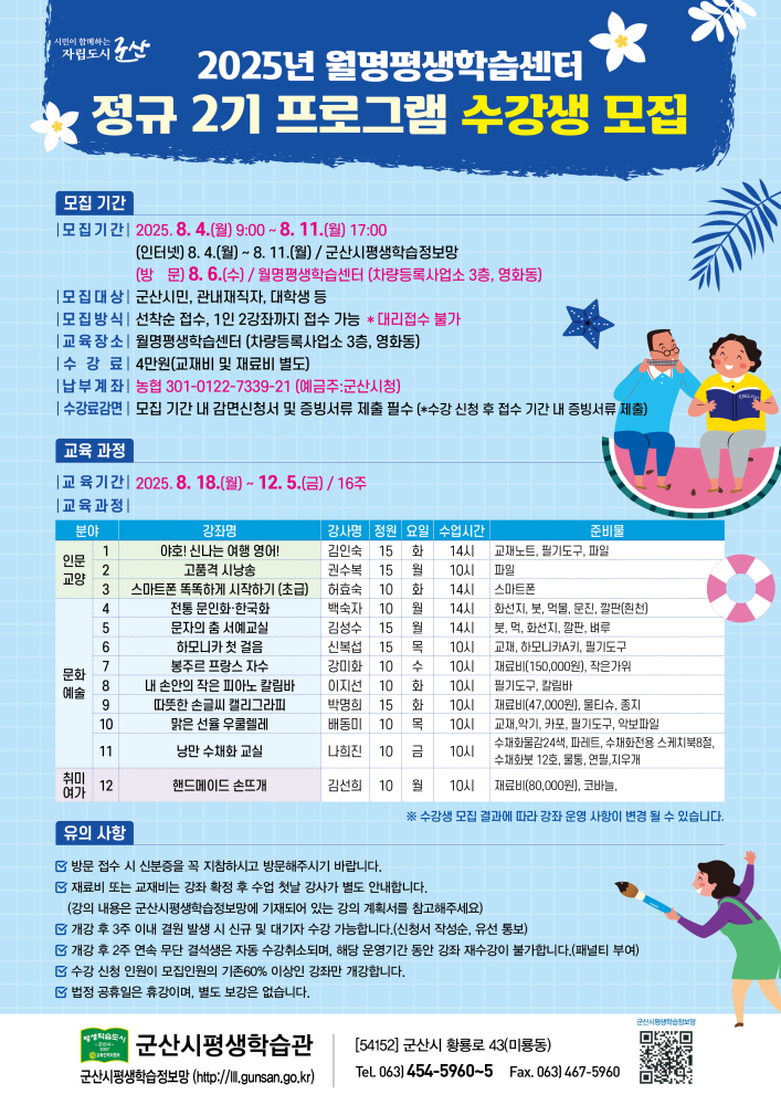 | 317 | 2025년 군산시평생학습관 시니어 2기 수강생 모집 |