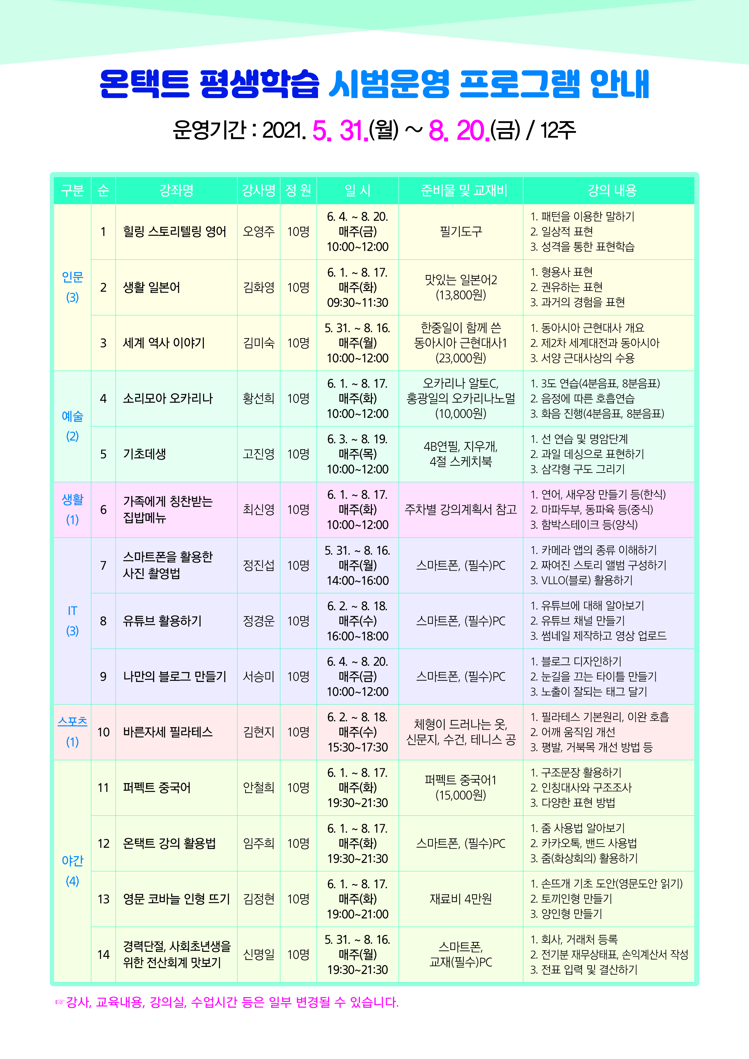 2021년 군산시평생학습관 온택트 평생학습 2기 시범운영 수강생 모집