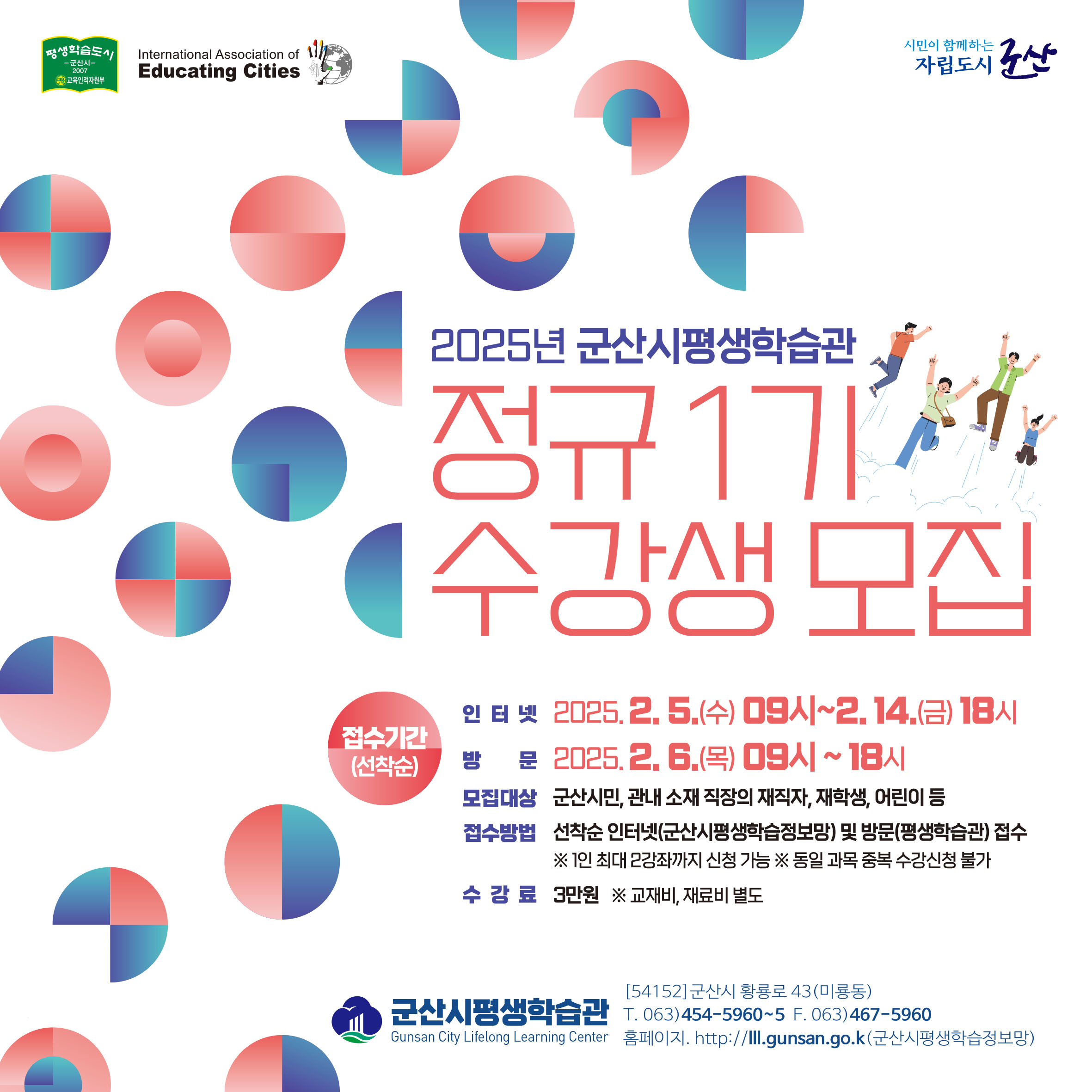 2025년 군산시평생학습관 정규 1기 프로그램 수강생 모집