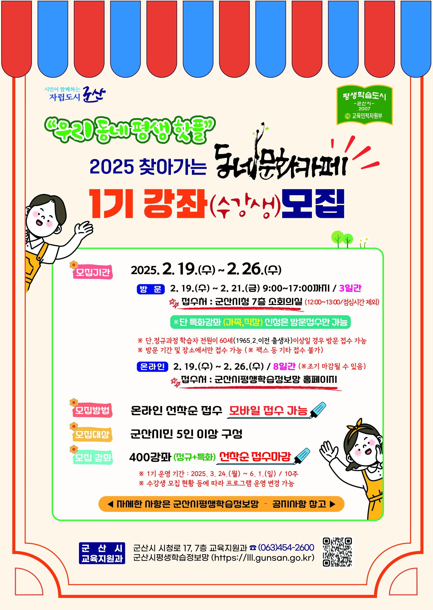 2025 찾아가는 동네문화카페 운영을 위해 1기 강좌(수강생)를 다음과 같이 모집하오니,