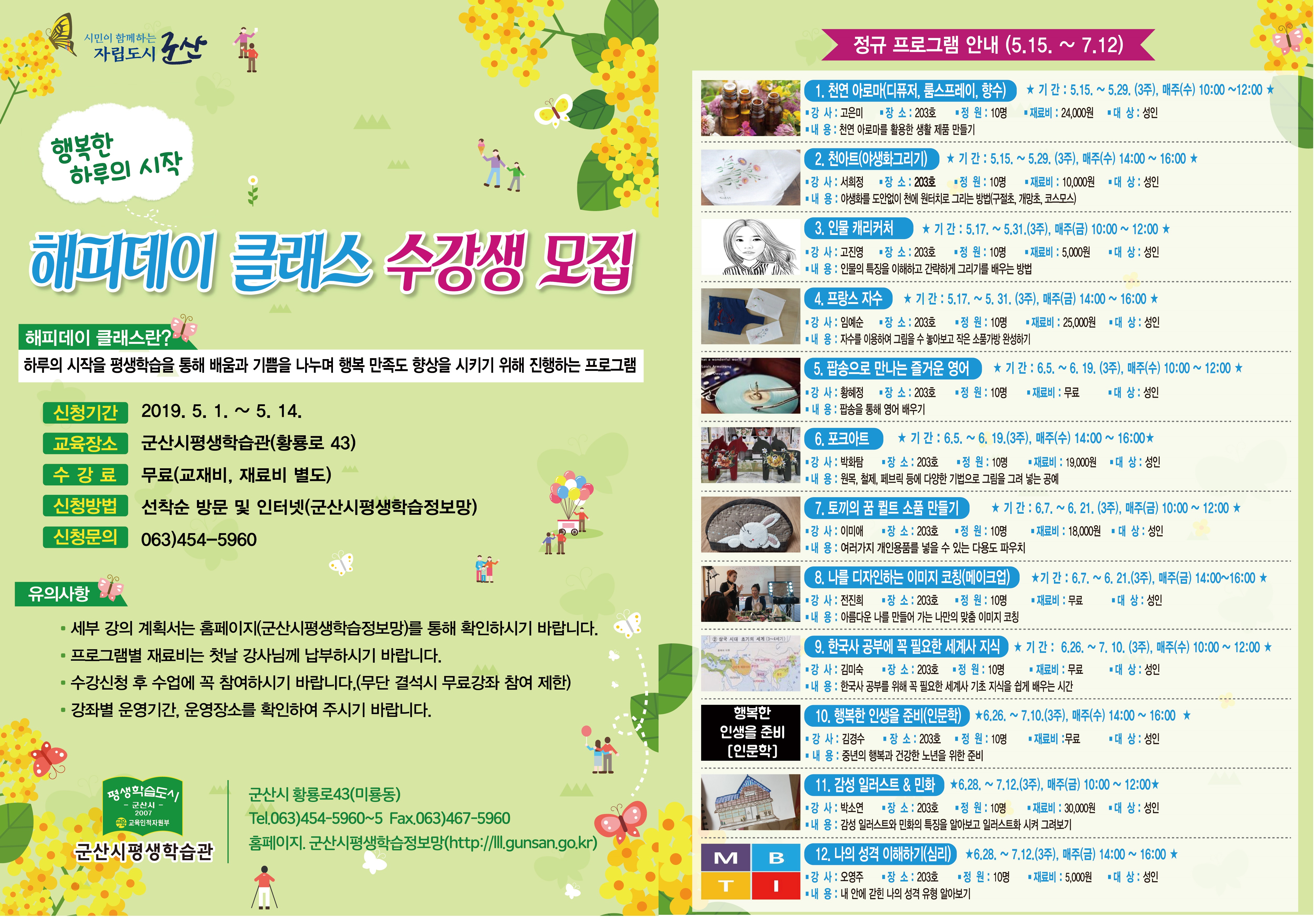 ○ 신청방법 : 선착순 방문 및 인터넷(군산시평생학습관)
