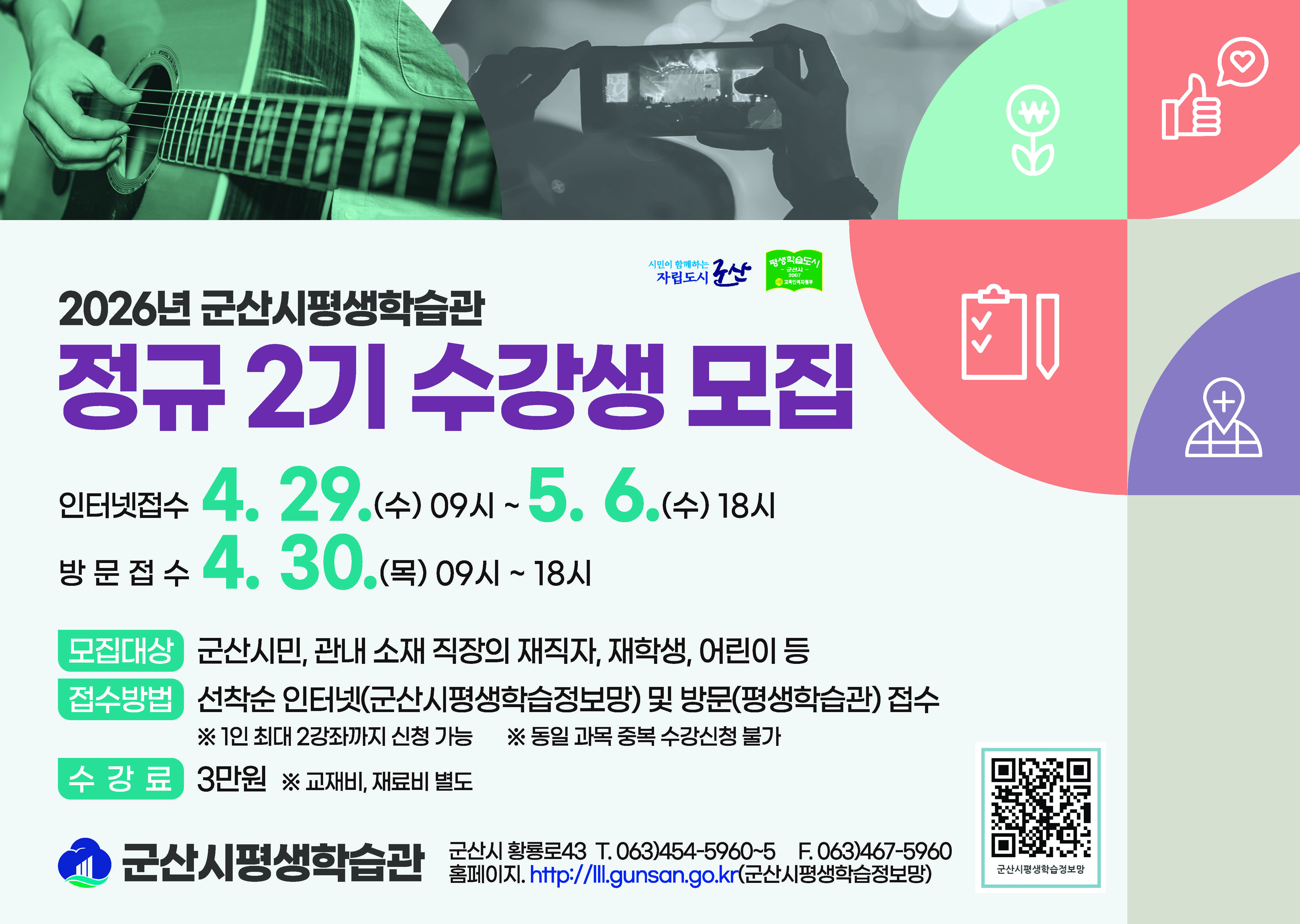2026년 군산시평생학습관 정규 2기 프로그램 수강생 모집