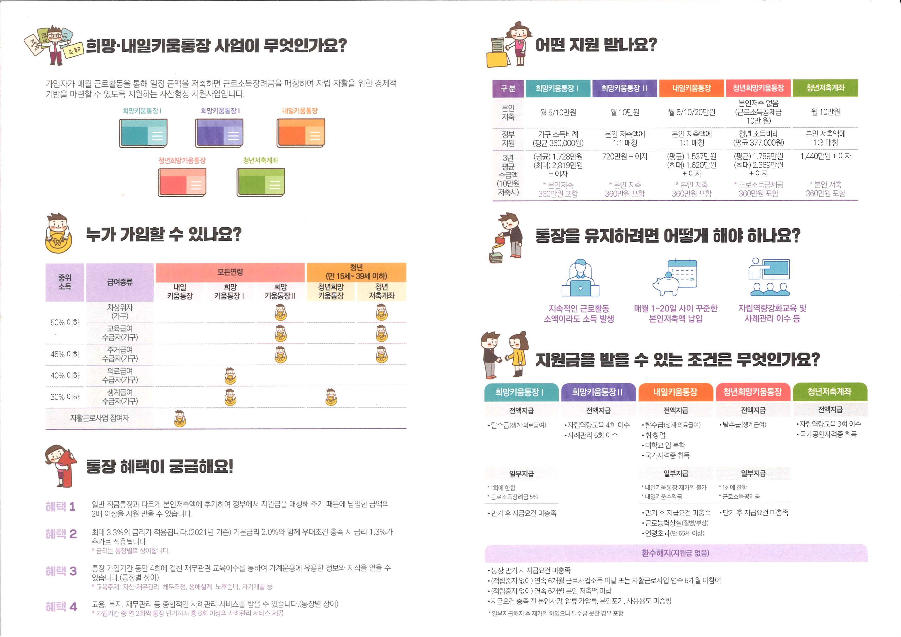 구 분 | 희망키움통장Ⅰ | 희망키움통장Ⅱ | 내일키움통장 | 청년희망키움통장 | 청년저축계좌 |