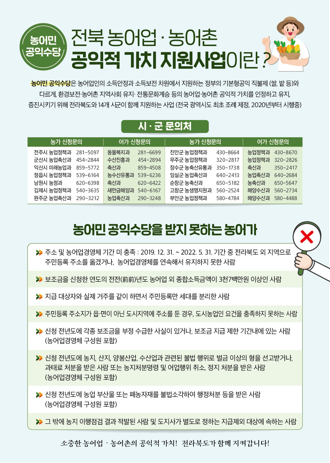 ❍ 지원대상 : 2019년 12월 13일 이전부터 계속하여 전라북도 내에 주소와 농·어업경영체를 두고 농·어업에 종사하는 농어가