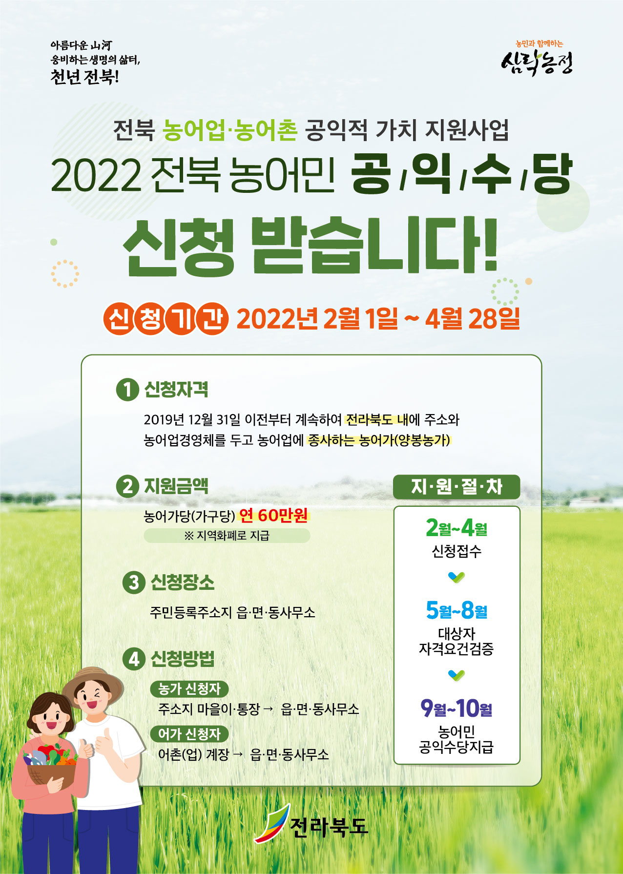 ❍ 지원금액 : 농어가당 연 60만원