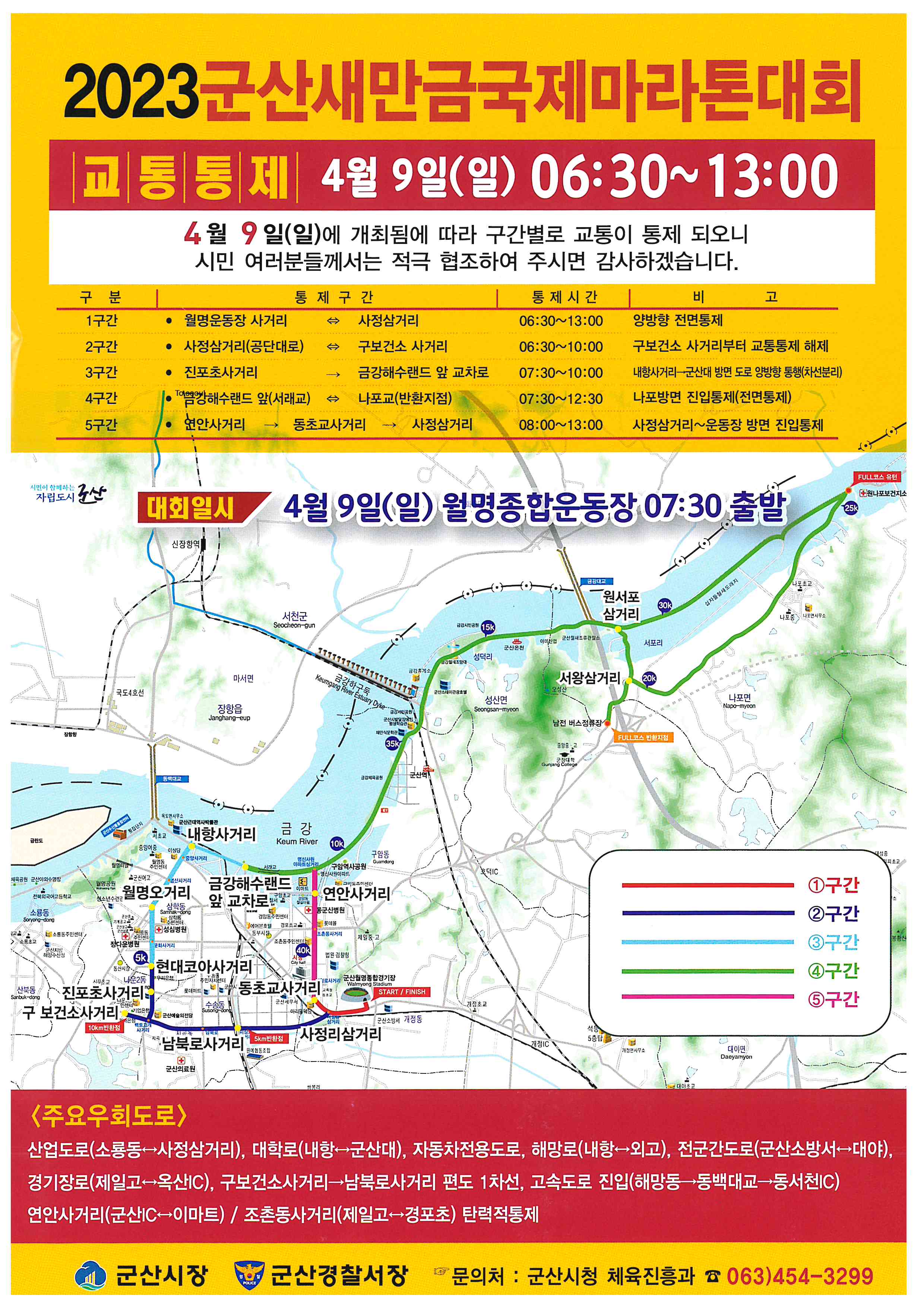 우리 시에서 4년만에 개최되는 『2023 군산새만금 국제마라톤대회』의 교통통제(붙임참조)를 안내하오니