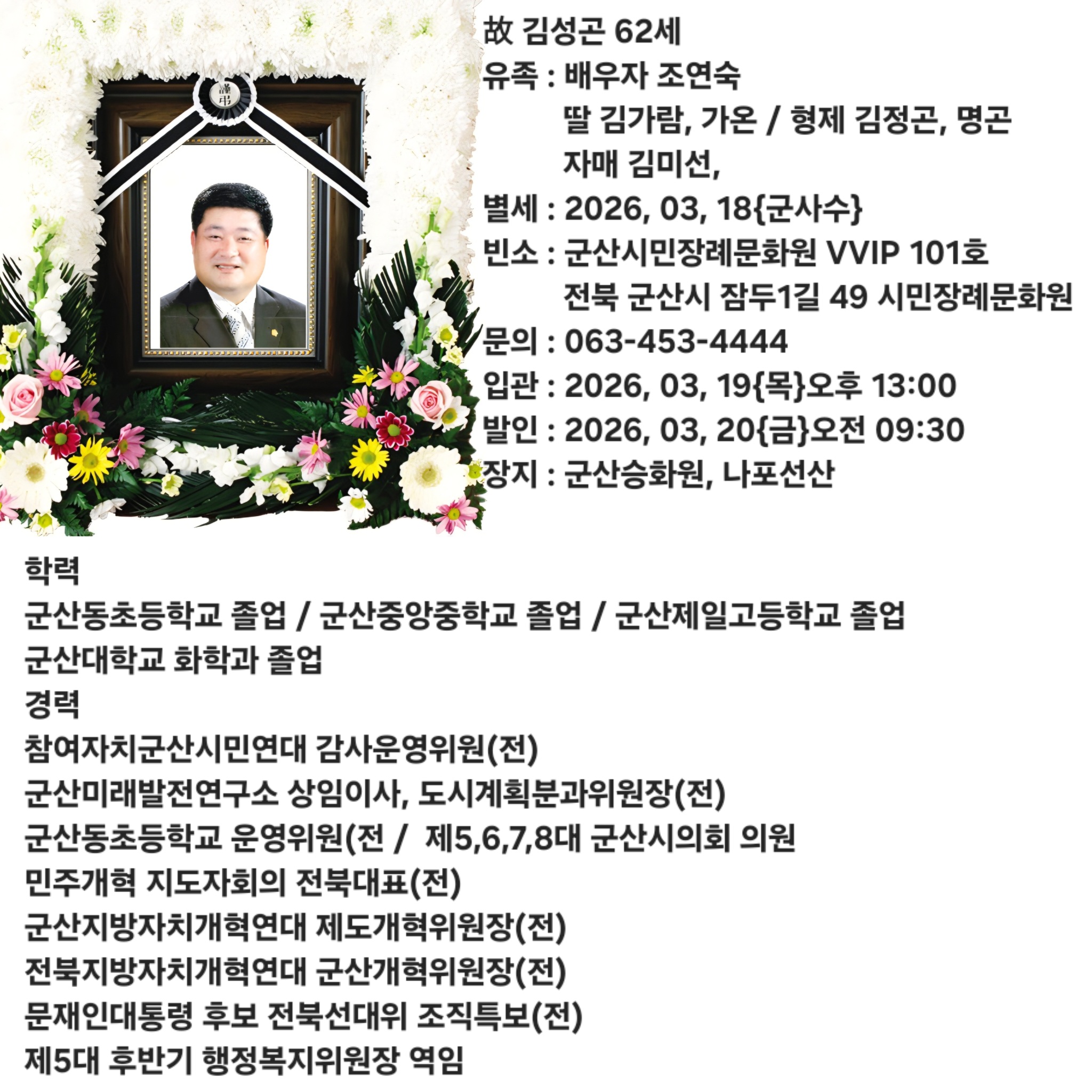 | 8662 | 故 김성곤 62세 전 군산시의원 |