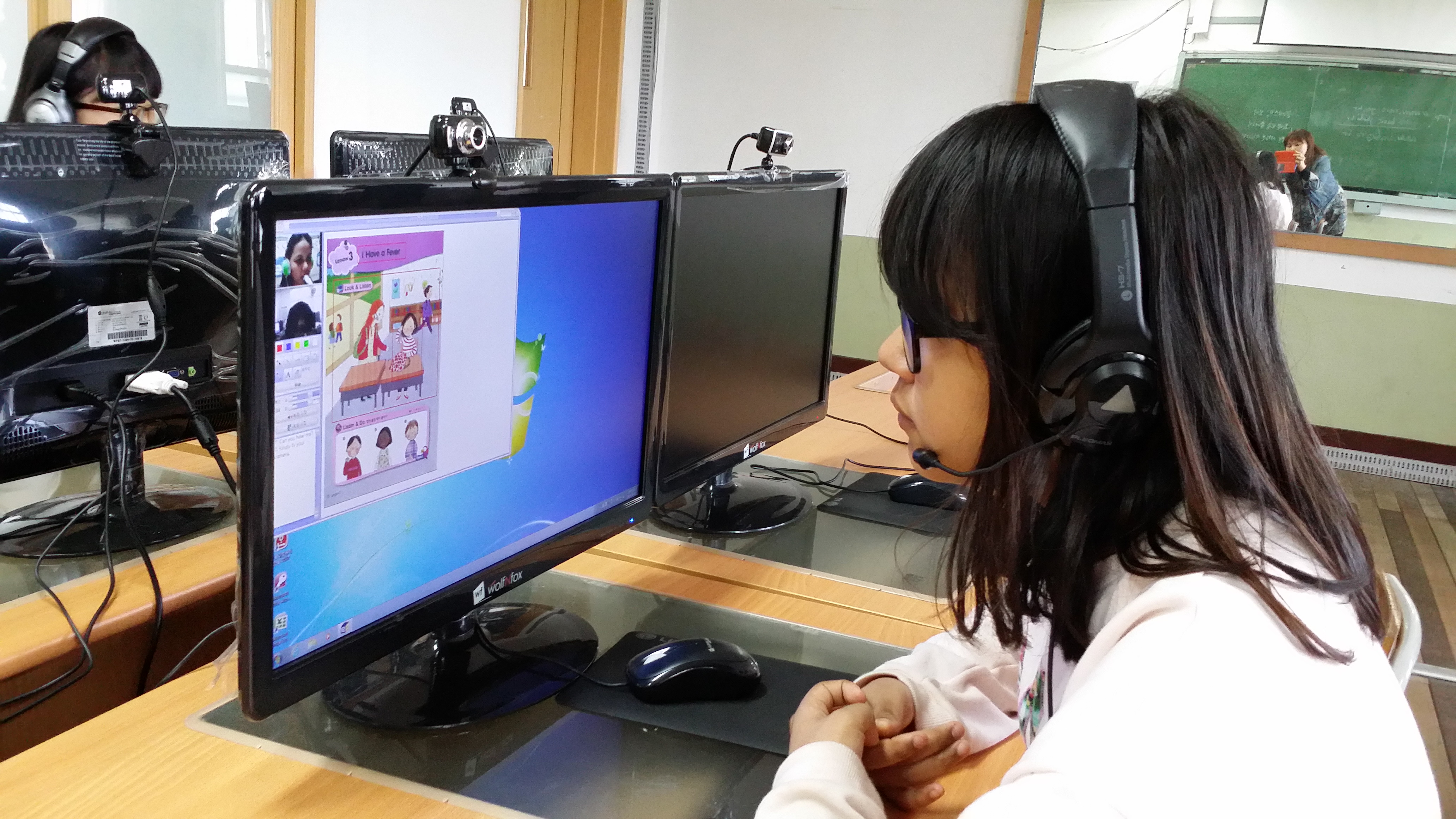 그 중에는 군산시에서 주관하여 실행하고 있는 화상영어 교육도 포함되어 있습니다. 5,6학년을 대상으로 매일 20분씩 진행되는 화상영어 수업이 학생들의 영어실력에 큰 도움이 되고 있습니다. 덕분에 이번 글로벌 해외연수에 2명 추천했는데 2명다 합격하게 되었습니다.