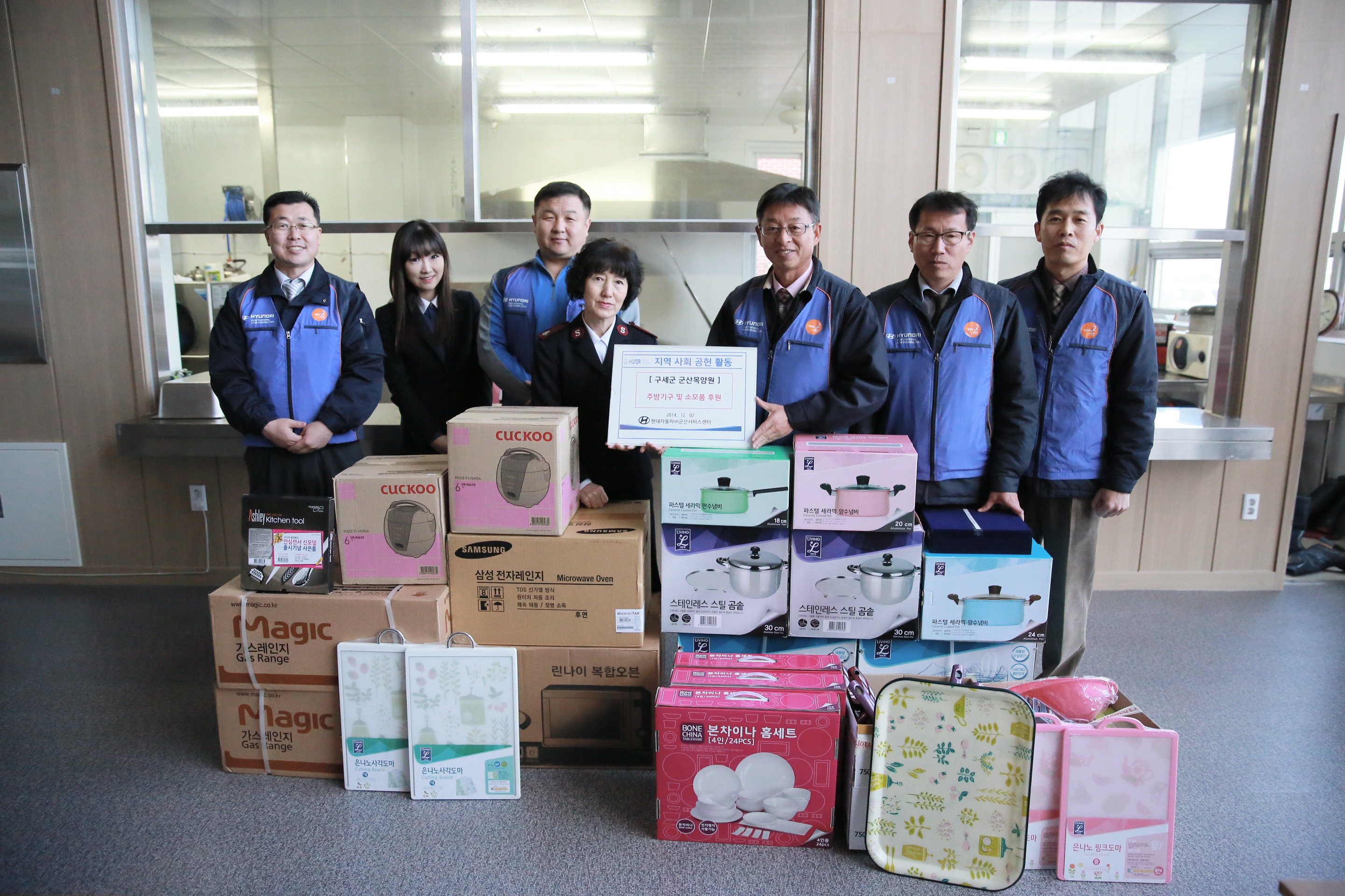현대자동차(주)군산서비스센터(이윤희 센터장)는 ‘자동차를 통한 인류의 행복추구’ 라는 경영 이념을 바탕으로 ‘함께 움직이는 세상’이라는 사회공헌 사명을 군산지역 시민들에게 실천하기 위해 그간 임직원들의 자발적인 참여와 서비스센터를 운영하며 얻어진 수익의 일부를 바탕으로 사회공헌 기금을 조성하였고 매년 말 군산지역 내 소외계층의 주거환경 개선, 물품 후원 등 사회복지실천에 필요한 자원을 제공하는 나눔 활동을 펼치고 있다.