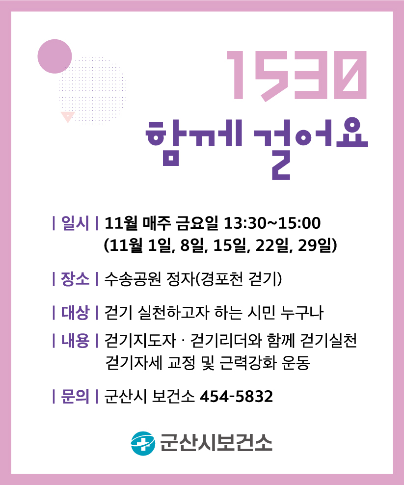 725 '1530 함께걸어요' 걷기참여 안내 다운받기 건강관리과 24.10.31 3009
