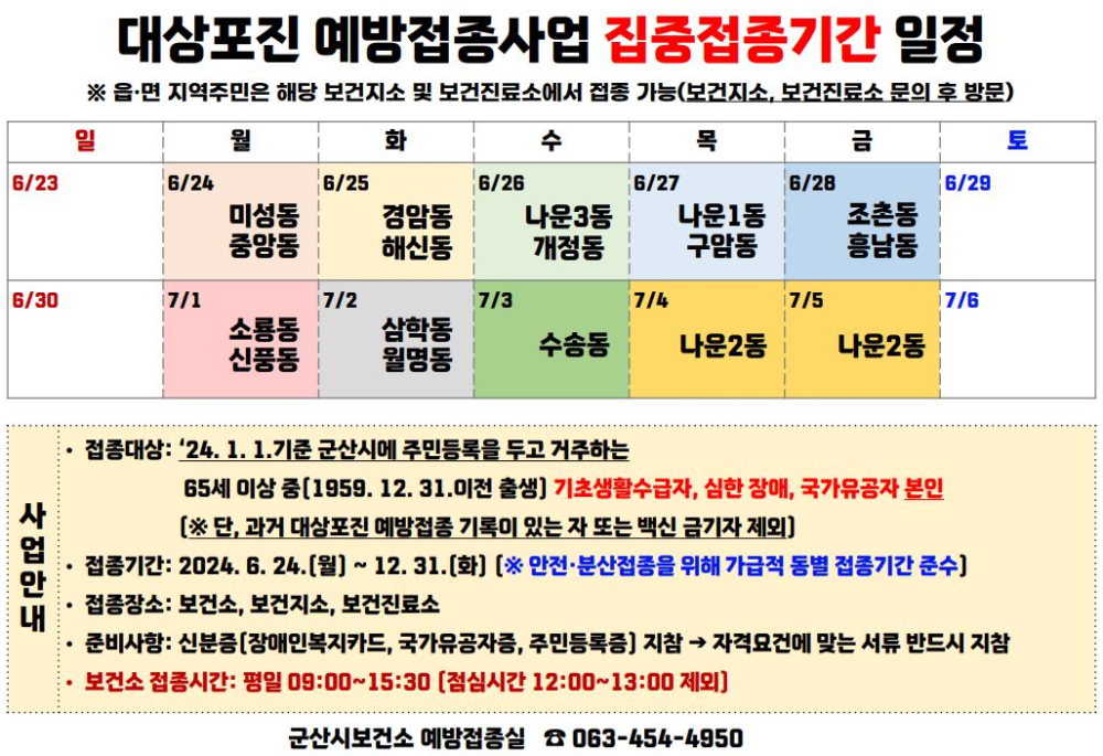 664 2024년 군산시 취약계층 대상포진 예방접종사업 실시 다운받기 감염병관리과 24.06.18 4976