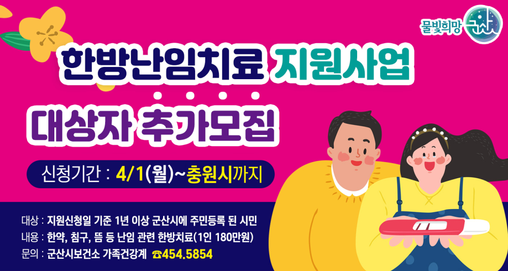 665 2024년 한방난임 치료지원 대상자 추가모집 안내(마지막 5명!) 다운받기 건강관리과 24.06.24 3242