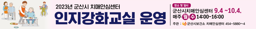 566 2023년 군산시 치매안심센터 하반기 인지강화교실 운영 안내 다운받기 건강관리과 23.08.17 4635