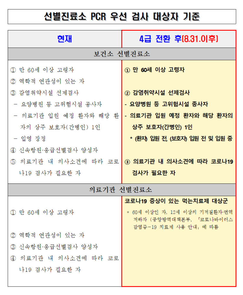 567 선별진료소 PCR 우선 검사 대상자 기준(8.31.이후) 다운받기 감염병관리과 23.08.24 4409