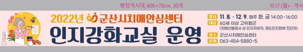 436 2022년 치매안심센터 인지강화교실 대상자 모집 다운받기 건강관리과 22.10.18 4182