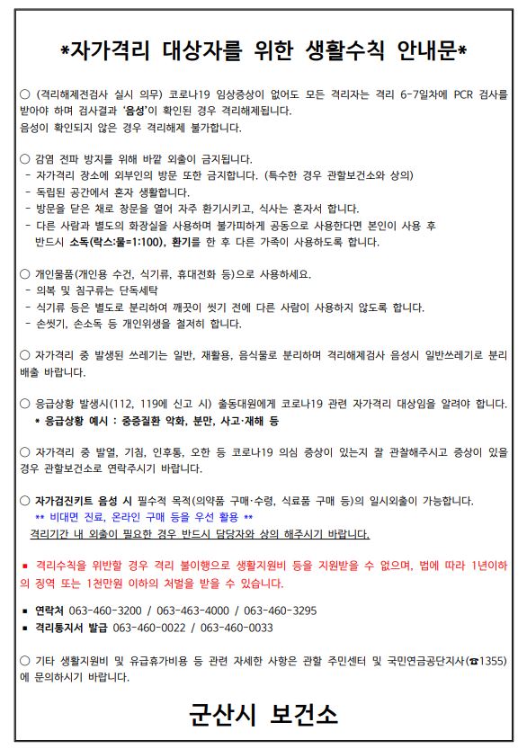 334 자가격리자 생활수칙 안내문 다운받기 보건행정과 22.02.12 6465