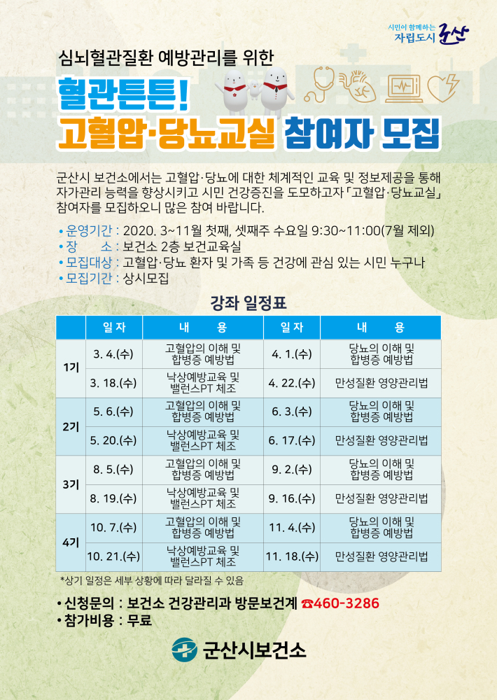 139 혈관튼튼 고혈압.당뇨교실 대상자 모집합니다 다운받기 건강관리과 20.02.17 2740
