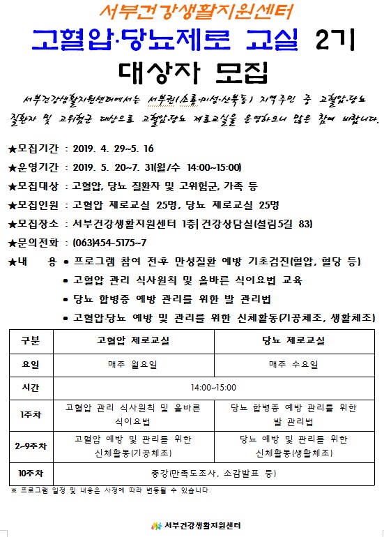 44 서부건강생활지원센터 고혈압 당뇨 제로교실 대상자 모집 다운받기 건강관리과 19.05.01 1969