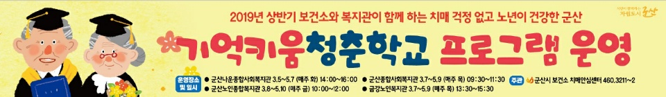 25 복지관과 함께하는 치매예방 기억키움청춘학교 프로그램 신청안내 다운받기 건강관리과 19.02.15 1933
