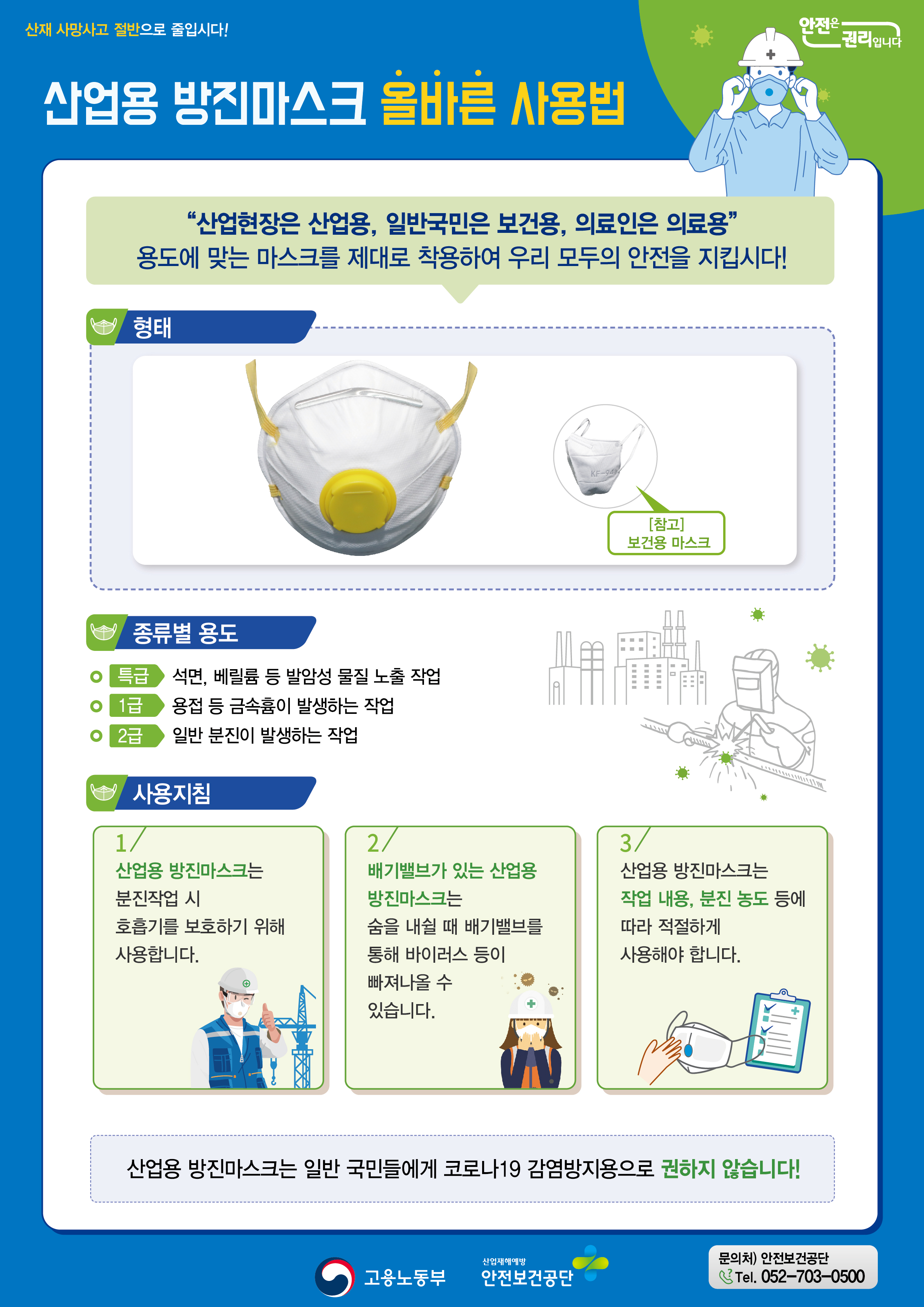 산업용 방진마스크 올바른 사용법 붙임 참고하세요