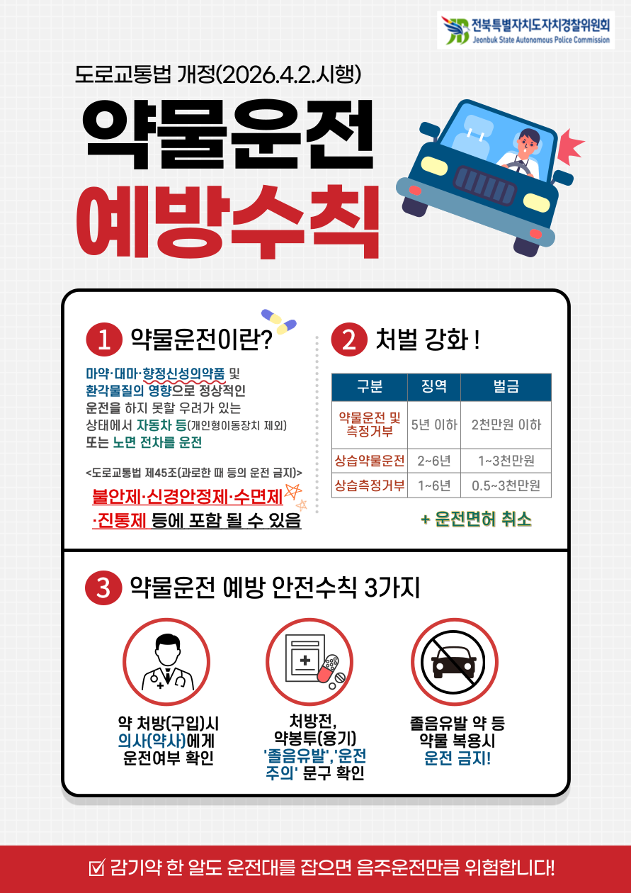 도로교통법 개정(2026. 4. 2. 시행)에 따라 마약류 및 처방약 부작용으로 인한