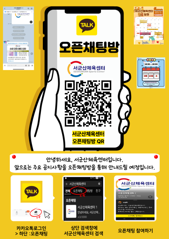 | 221 | 서군산체육센터 카카오톡 오픈채팅방 개설 안내 |