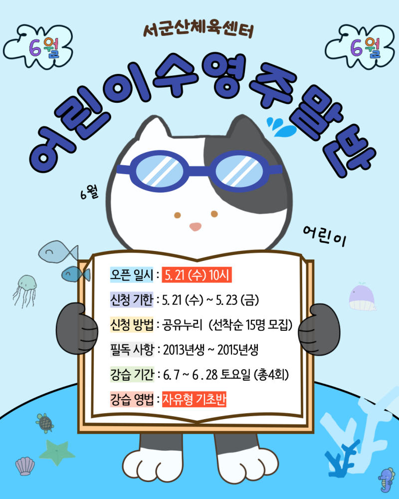 | 196 | 서군산체육센터 어린이 수영 주말반 신청안내<6월> |