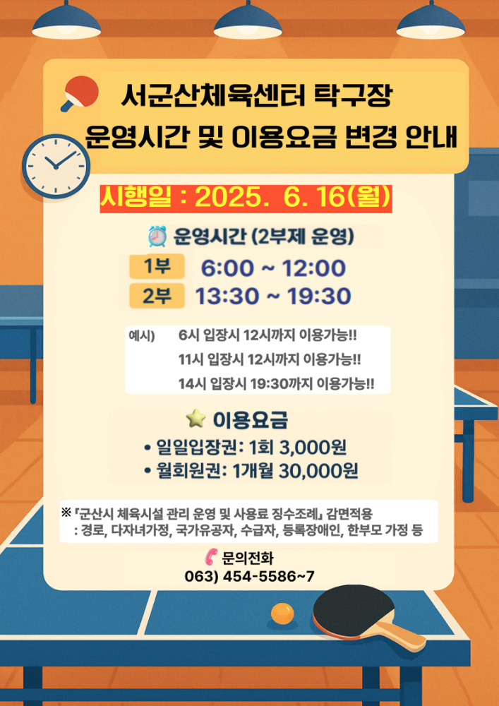 | 199 | 서군산체육센터 탁구장 이용요금 및 이용시간 변경 안내문 |