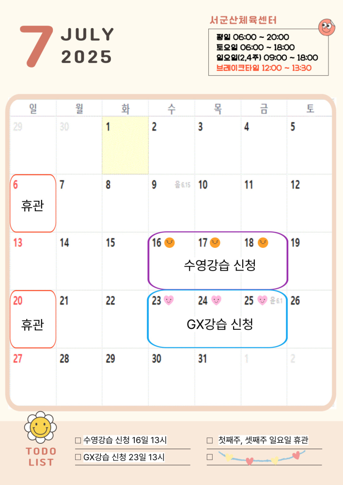 | 202 | 서군산체육센터 7월 일정 달력 |