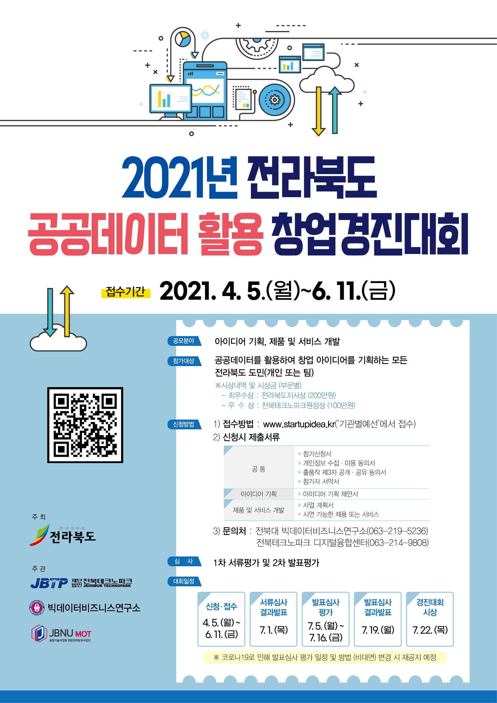 2021년 전라북도 공공데이터 활용 창업경진대회를 개최합니다. 많은 관심과 참여 부탁드립니다.