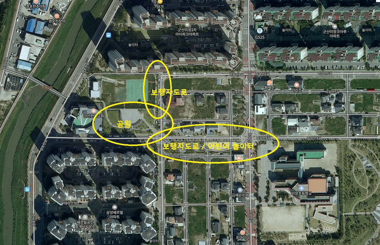 (미장동과 삼성쉐르빌, 미장초 주변 산책로, 어린이 놀이터 주변)