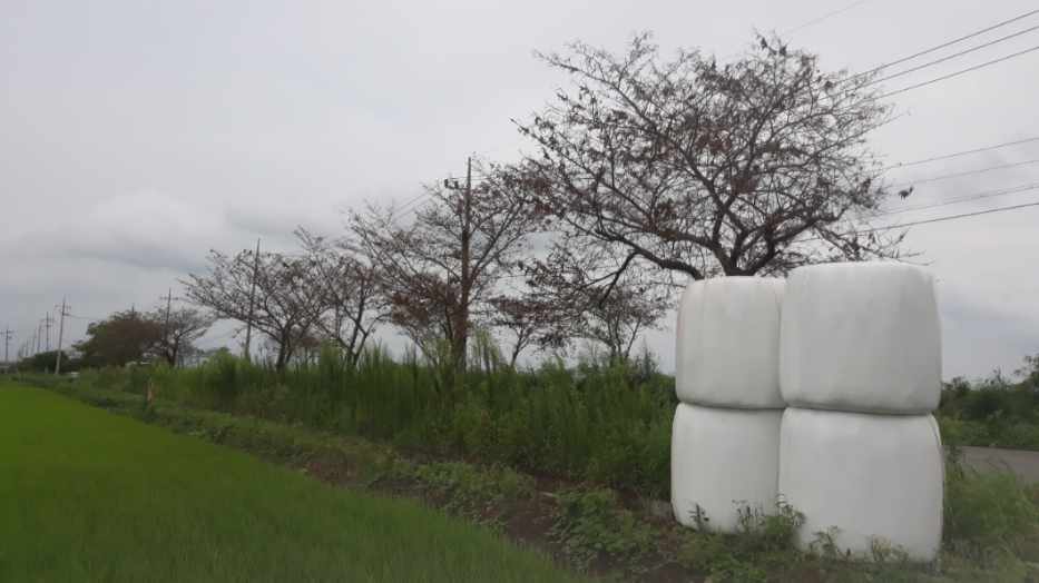 가로수에서 송충이가 떨어져 논두렁 콩및 벼에 큰 지장을 초레하고 있습니다