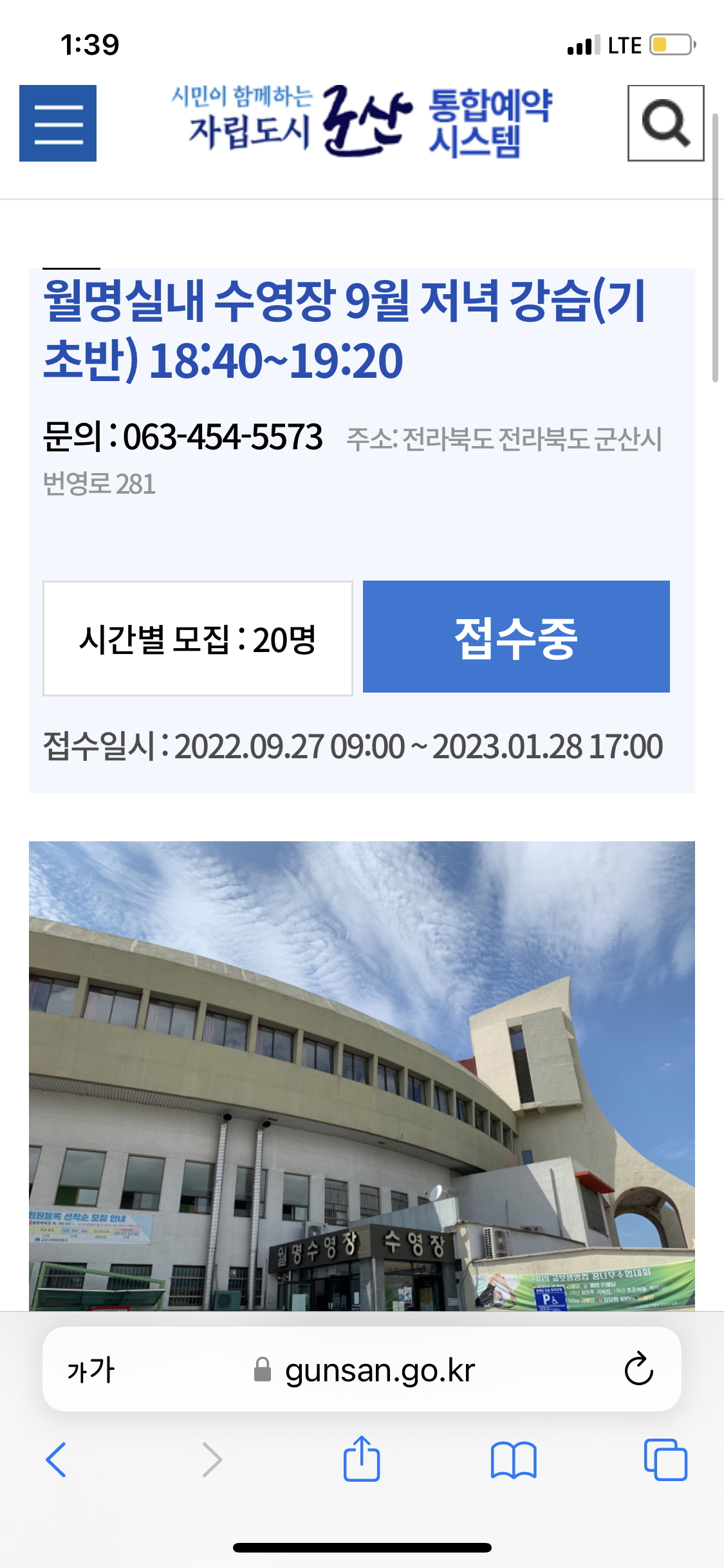 금일 오후 군산시청 홈페이지에서 월명실내 수영장 10월 강습 신청을 위해 통합예약시스템을 이용하였습니다. 정상적으로 신청이 진행된 후, 뭔가 석연치 않은 부분이 있는 듯하여 다시 확인해보니