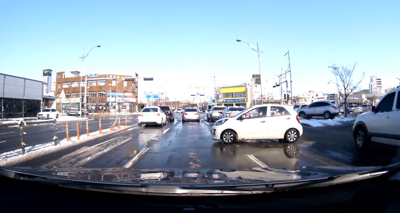 위 장소 마트에서 나오는 차량들이 대부분 이렇게 안전불감을 갖게 1차선까지 가로질러들 나오며 교통을 혼잡하게 만드는 상습 구간입니다.