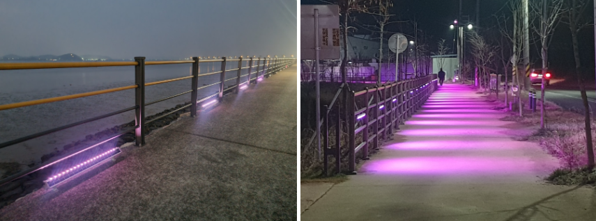 다만, 한 가지 아쉬운 점이 있다면... 요즘 설치되고 있는 난간 경관조명이 제대로 설치되지 않았다는 점입니다! 1. 시안성이 매우 떨어집니다! 통상적으로 조명은 아래를 비추어야 하는데, 위를 향하고 있어 시안성이 매우 떨어집니다 똑같은 태양광조명이 경포천에 설치되어 있는 걸 보면 차이점이 많이 느껴집니다 바람이 많이 부는 수변로 특성상 바닥에 설치되었다고는 하나... 조금만 더 위로 올려 바닥을 비추어야 더 밝고 은은한 분위기를 조성할 수 있습니다 2. 안전에 취약합니다! 가로폭 1m 정도의 태양광 조명이 바닥에 설치되어 있다보니.. 특히 아이들이 발로 차거나 밟을 염려가 됩니다 조깅하시는 분들도 많은데, 발에 자꾸 걸리다 보면 금방 고장날 것입니다 3. 안전난간이 매우 위험합니다! 기존 설치되어 있는 안전난간 가로폭이 너무 길다보니, 바람이 세게 불 때 매우 심하게 흔들립니다 가까이 가면 굉음을 내기도 합니다 몇 몇 난간봉은 크게 휘어져 있으며, 심지어는 끊어진 것도 있습니다! 중간에 세로 기둥을 설치하여 바람에 흔들리지 않게 고정해 주시기 바랍니다! 군산시민들에게 아름답고 안전한 멋진 금강수변산책로를 제공할 수 있도록 위 내용을 적극 검토하여 개선해 주실 것을 부탁드립니다 감사합니다!
