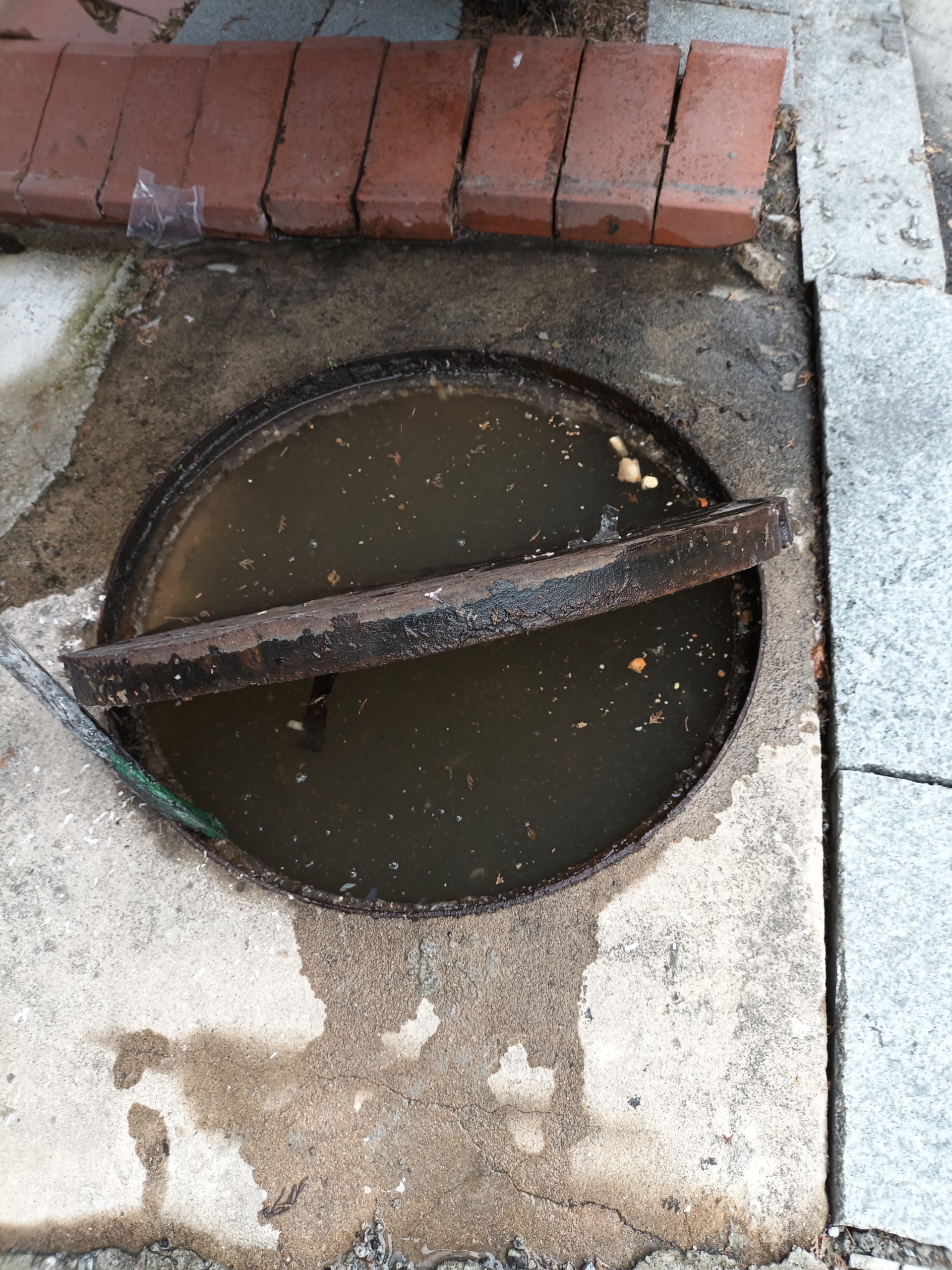 군산시 하수구가 막혀 개인소유지로 역류 범람하여 대변분해물 등 오물이 낭자하여